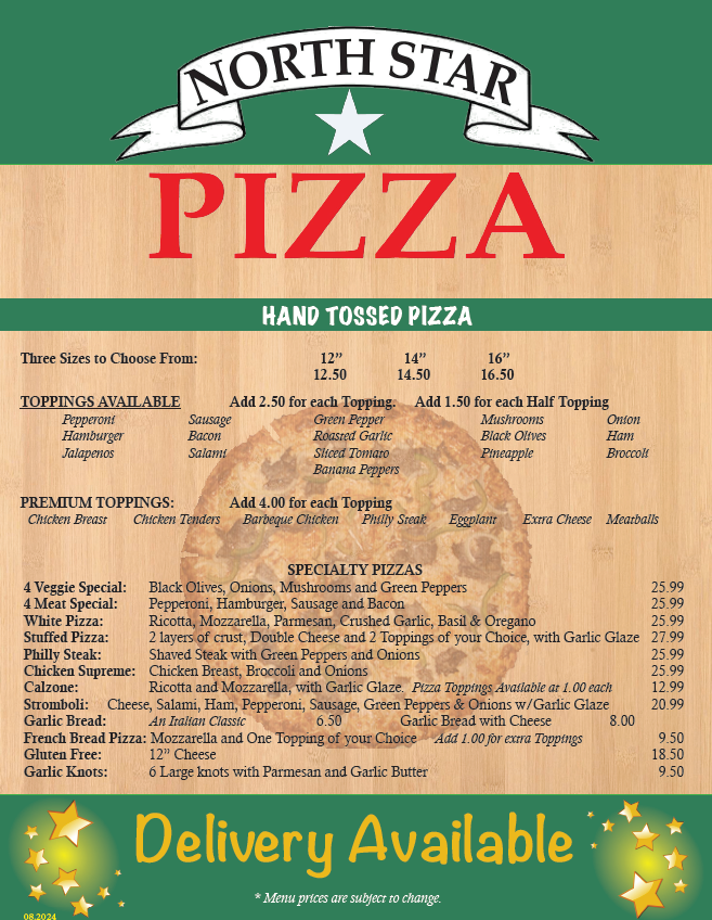 North Star Pizza Menu